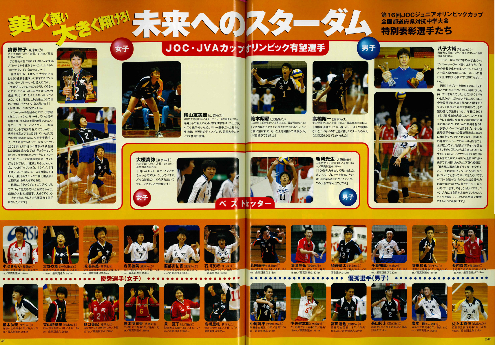 第16回JOC杯 特別表彰選手として月刊バレーボール2003年2月号に掲載